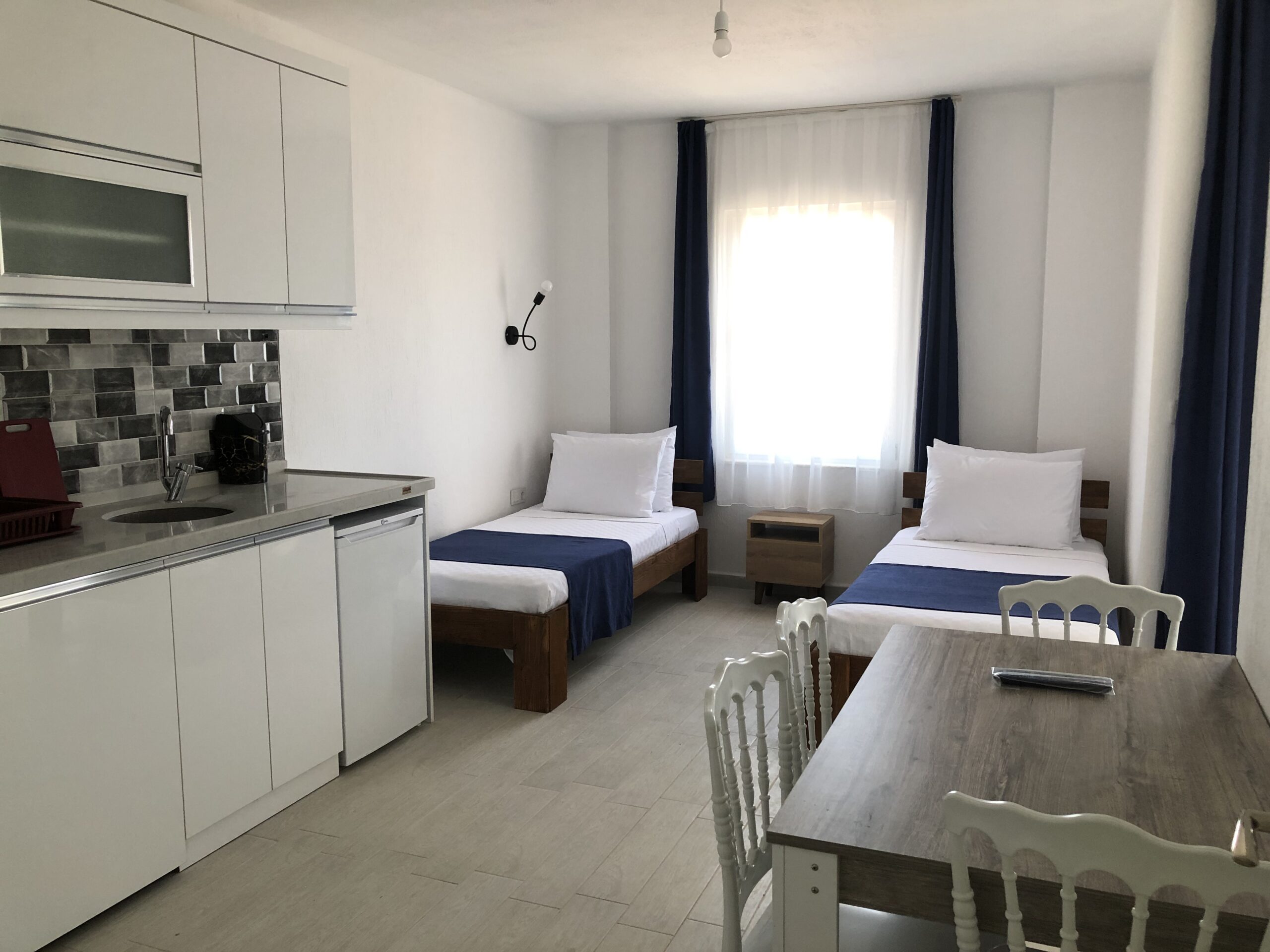 Ev konforu ve sıcaklığını sağlayan 1+1 Ada odası; 4 kişilik aileler için ideal imkanlar sağlarken pencere ve balkonlarından denizi, limanı ve köy manzarasını geniş açıdan seyretmenize olanak sağlıyor.