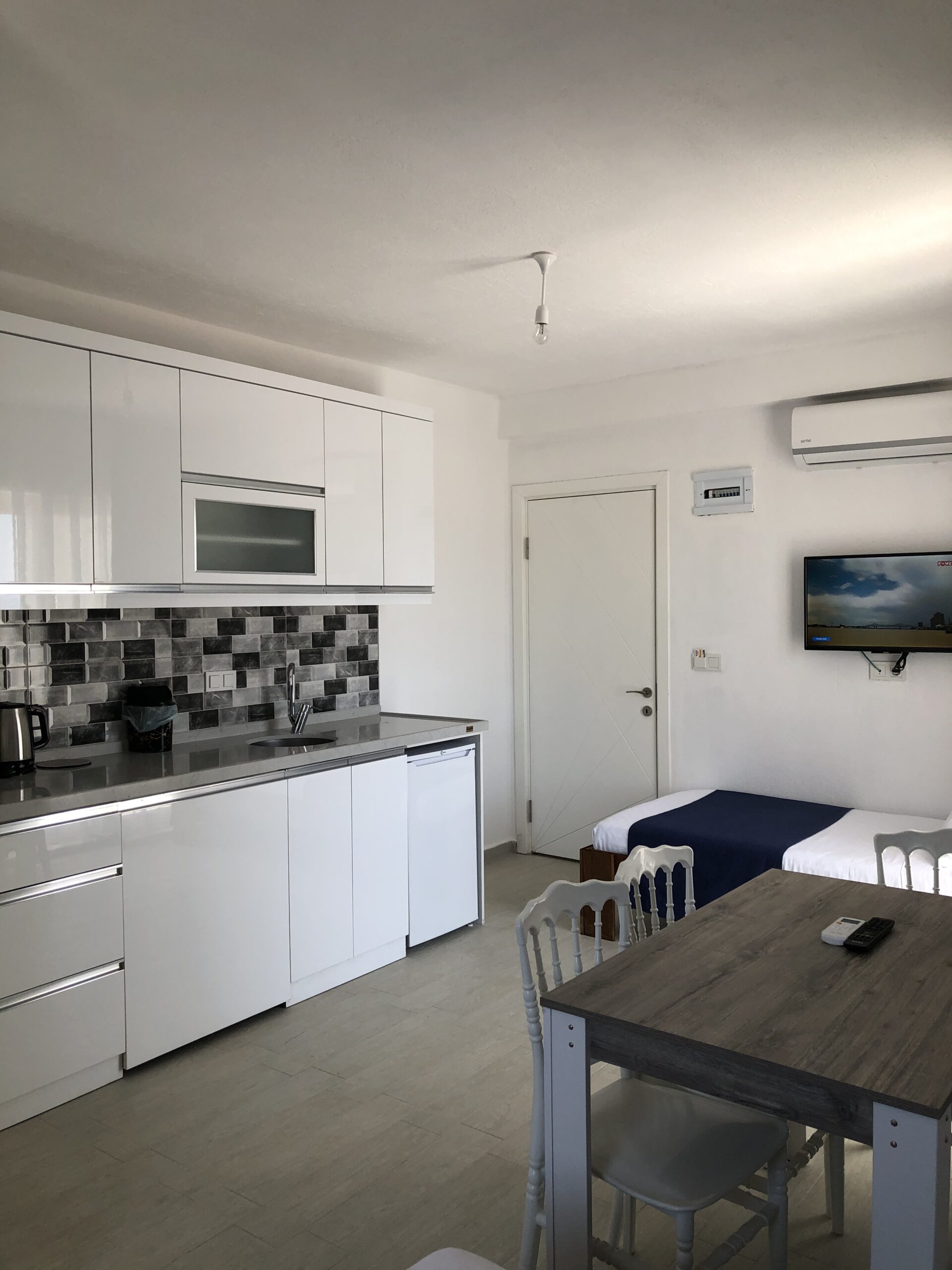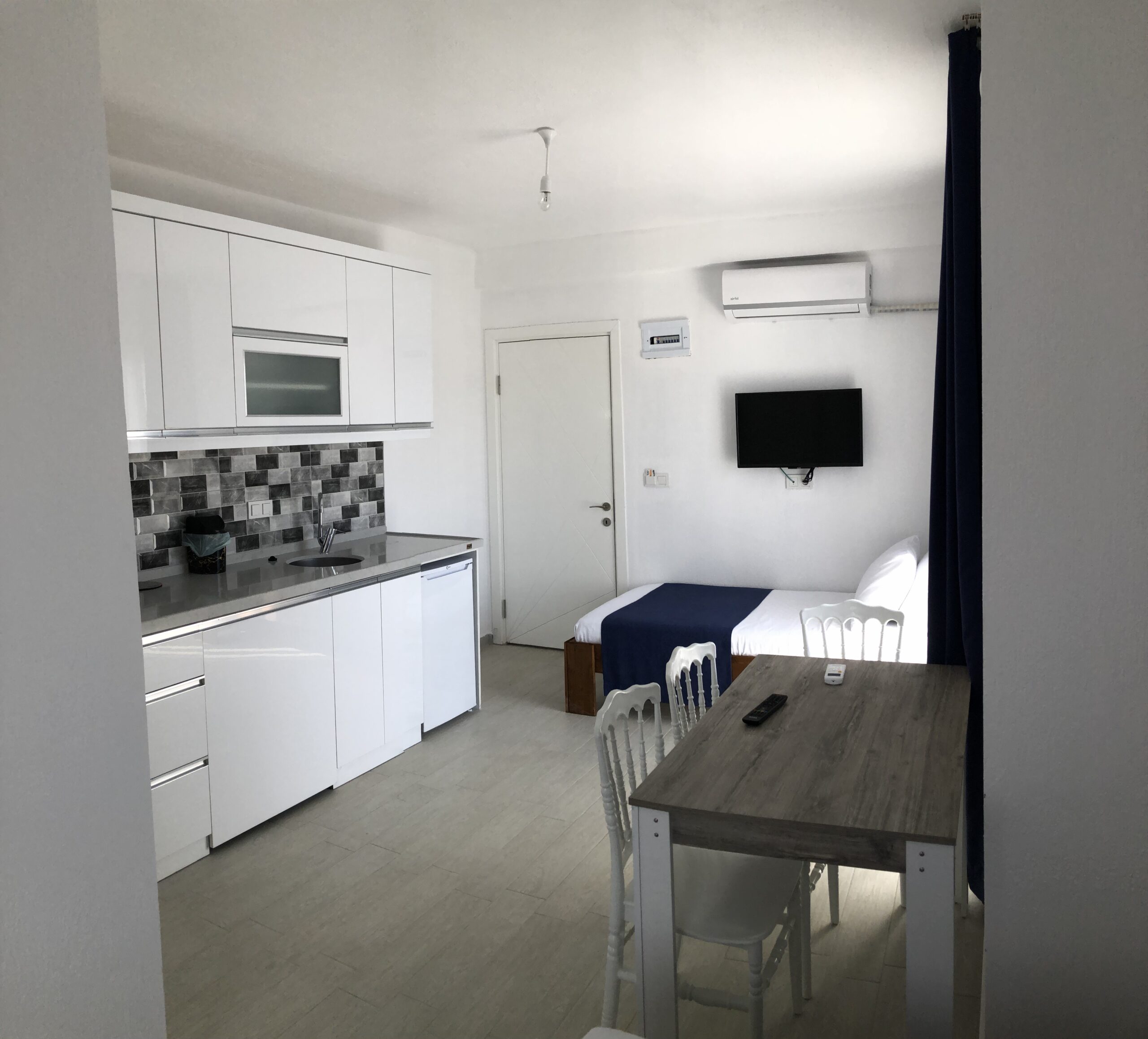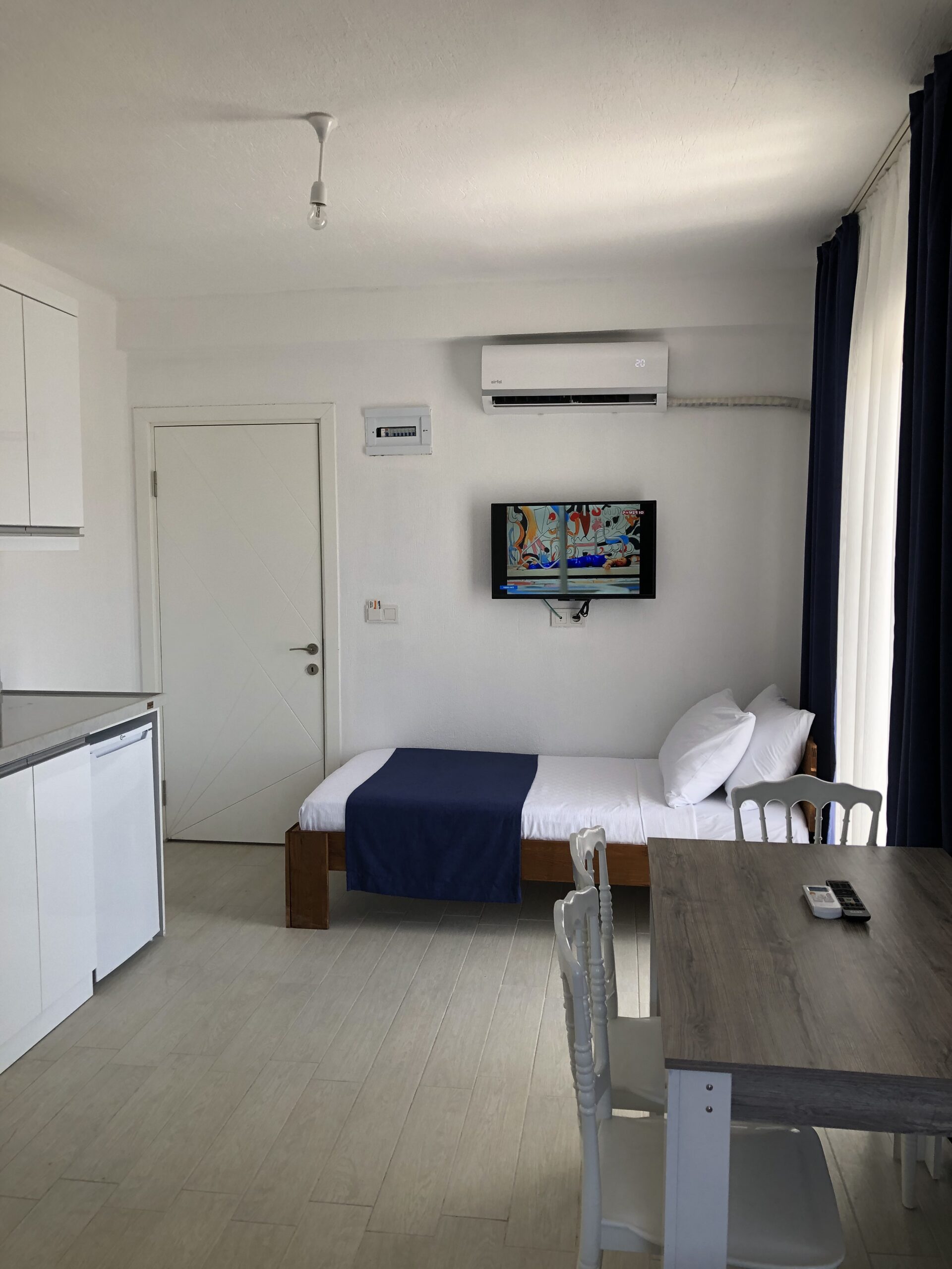 Deniz, liman, dağ ve doğa manzaralı rahat ve nezih odamız; konforlu ve huzurlu bir tatil imkanı sağlıyor.